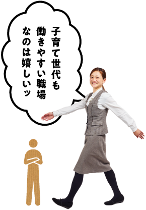 育休終了後も子供が3歳に達するまでは時短勤務制度があります。育児もしっかりサポート!